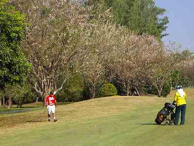 5時50分目覚ましで起きて、急いで朝食後準備し1949会ゴルフ ロイヤルチェンマイゴルフ場へうす暗い中出かけて、7時頃に到着すると韓国の大型バスがちょうど到着したところだった。