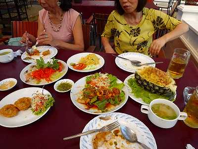 帰りがけ顔さんの店により、お礼を言ってから近くのレストラン{バーンワンタン}で13時近くになっての昼食を池を見ながら、あまりお客もいなかったのでのんびりと・・・