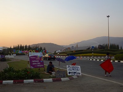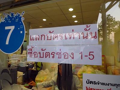 駐車場50B支払い、そこからソンテウで一人5Bで会場近くまで送ってもらい、チケットの購入 自分ら2人は何回でも使える券を購入してあったので、提示するとそれに代わる券に証明書提示して、サインして変えてから入場。