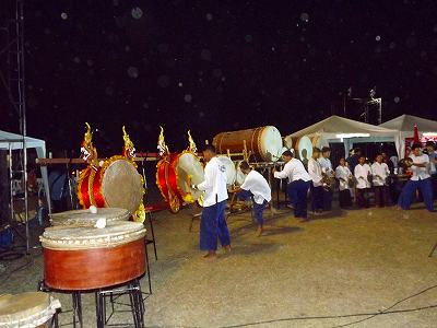 お坊さんのお祈りから始まり、そしてお坊さんへのタンブン 太鼓やタイの踊り、胡弓に似た楽器の演奏、コスプレ(私には意味不明だったが・・) ソーラン節(2つともタイ人の踊りにはびっくりした) それでもう20時過ぎたので帰宅することにする。