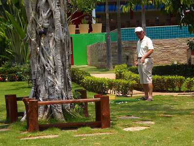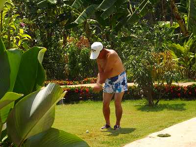 8時に朝食を頼んであったので、その前に昨日の続きでゴルフ庭での練習をはじめる。