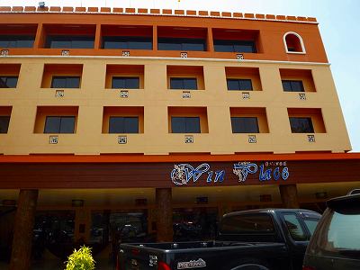 スパーハイウエーを空港方向へ行った中間地点でホテル{ウインプレース}。