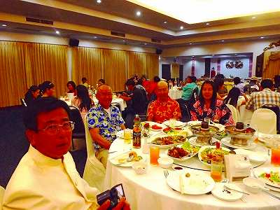 タイ時間だが、すでにタイ人の多くは集まっているのだが、12時が12時半を過ぎてH田さんの願いだそうで、主賓・来賓無しで食事し、飲んで語らうそんな場が良い雰囲気だ!