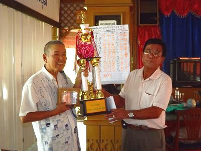 昼食・表彰式がホールインワンであるので、シャワー後12時近くに始まり、優勝者は一緒に回ったK田さん、2位はT谷さん 自分は16人中と言っても今回初めてヤ2回目の人もいるので、そのものではないが6位。