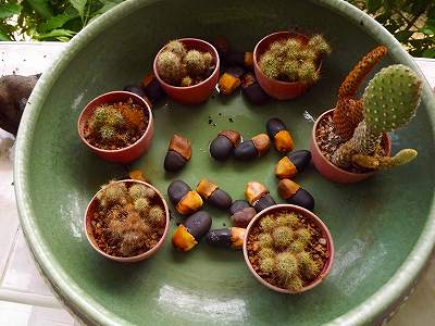 実、種は昨年持ち帰って鉢の中に飾りとして入れてあったが、そこから飛んで芽が出てきたのだろうか??