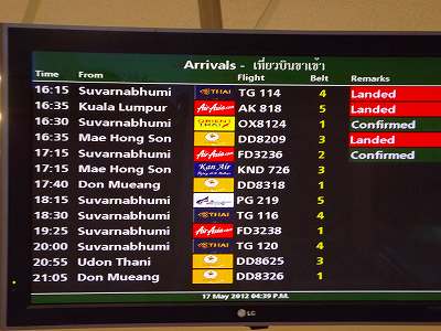16時25分チェンマイ到着となっていたが、空港へ着いて駐車場に車を入れ向かうと16時35分を過ぎている。