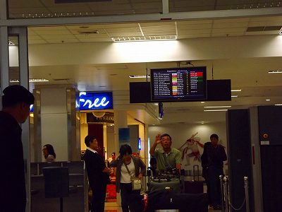 タイ入国の手続きもあるだろうし、直ぐには出て来れないだろうと電光掲示板を見ながら待っていると、18時過ぎにようやくゲートに姿を現した。