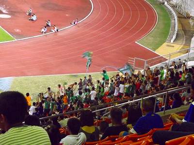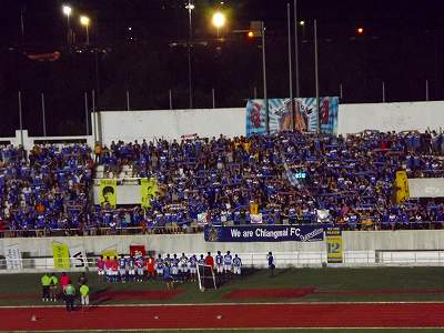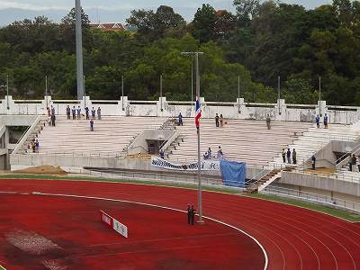 感心しながら雨の様子を見てから、ちょっと休んで17時過ぎ サッカー試合(チェンマイFC対ランパーンFC)の試合観戦へ、お弁当持参で700年競技場へ向かう。
