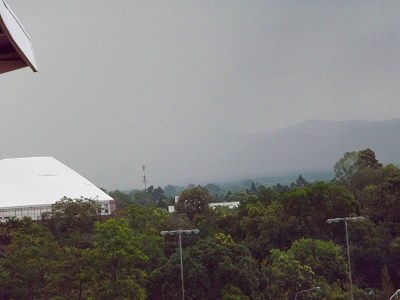 有村智恵の逆転で大会連覇5アンダーになって、先ほどのドライビングレンジでの練習を思い出しながら、さすが余裕のある戦いだなーと感心していると、15時過ぎ球に山が見えなくなったかと思うと強い雨が降ってきたのにはびっくりしてしまう。