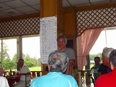 シャワー後練習場2階の(ホールインワン)で昼食・表彰式。