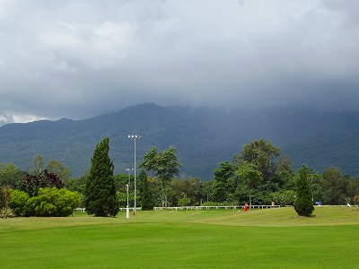 山は見えるので雨の心配は無い、風もあって良いゴルフ日和だがスコアーがイマイチか 0時すぎ小雨
