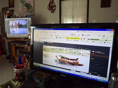 11時半前に帰宅して、シャワー後昼食、そしてゴルフ放送を見ながら、タイのテレビでは{ロングボートレース}を両方見ながら・・・
