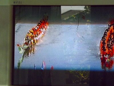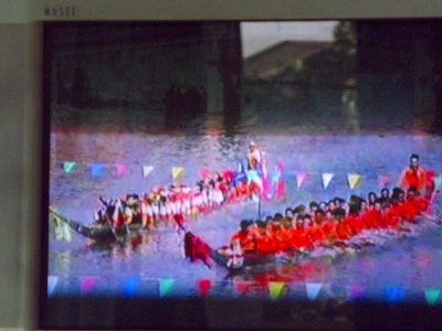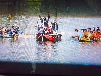 40人くらいがあたりまえと思っていたが、今回9人乗りのボートレースもあったり、丸太の上でまたがってボクシング・・・ 町の紹介などもあって楽しく見た。