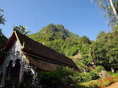 朝はチェンダオの山が霞んで見えたが、はれてきて勇壮な姿がみえる、チェンマイは暑い・・・