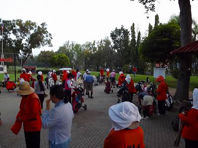 女性7人、男性27人といつもの人数よりはるかに多い、女性2組・男性6組 4組目A野さん・T崎さん・S田さん・M川さんの5人 出足からボギー・ボギー・ボギーと水曜日とは違ってダボを叩かなかったのだが、4番ショート右へ曲げて、2打目寄らなく3打目オーバー 4オンの2パットのダブルパー。
