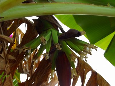 7時過ぎには起床して朝食 庭のバナナが咲き始めたとの知らせでカメラを持ち出して写真を撮る。