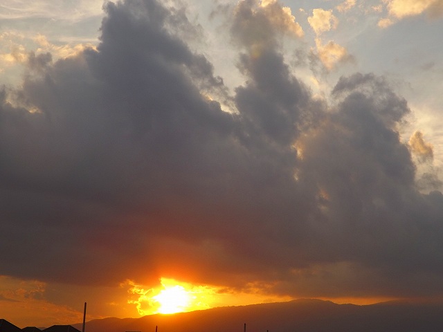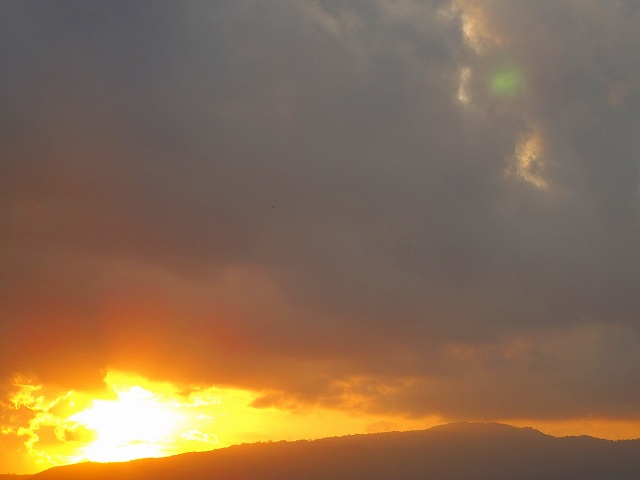 17時半 ドイステーブに沈む夕日 を発見{雲が朝から多かったので見れないかなと思っていたが、思いがけず太陽が顔を出す!!!}