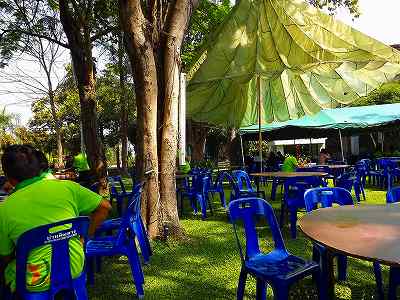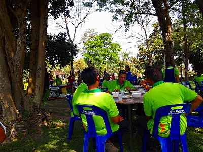 車にゴルフバッグを詰め込んでから、クラブハウス横での昼食、麺とご飯があったが、麺を食べながら一緒にラウンドしたみんなと話しながら・・・