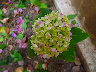 | ブーゲンビリアの下に咲き始めた紫陽花 |