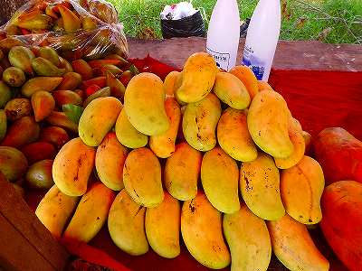 帰りに道路沿いの屋台で、マンゴー3種類・アボガドを買って帰ると、13時半を過ぎてしまっている。