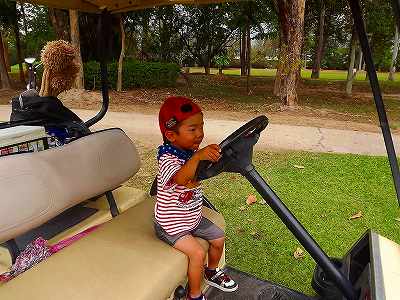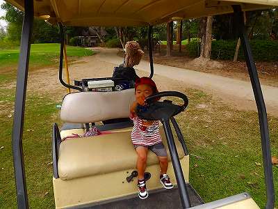 ところが、9ホール目で後ろから来たタイ人2人が、ゴルフ場へ電話して子供がうろうろしていると