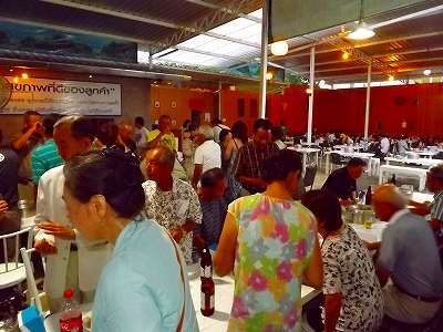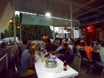 案の定途中で渋滞もあって、会場{ハイソ}へ着いたのは、18時ちょうどで、いろいろ準備をしていながら、約束の18時半に開会 2名欠席で34名参加 この会も長年かかわってきているが、やはりチェンマイで多くのものを教えられたことに大いに感謝している。
