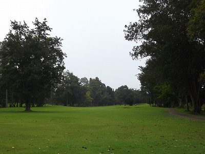 雲が一面に広がっている、ゴルフ中最後のほうで小雨、午後は晴れ間が、