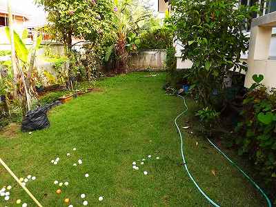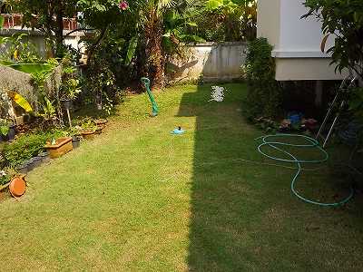 やはりはさみと違って上手くは出来ないが、何しろ3・4日かかっていたのが、1時間半程で芝刈り作業は終了する、汗をかきながら終えてから、丹念に水撒きして11時半過ぎに終了。