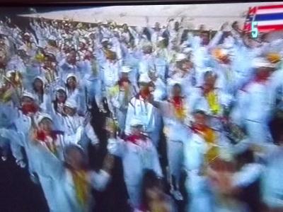 ちょうど良く第27回アセアン シー ゲームの閉会式 花火やダンスのセレモニーが終わって各国入場かと思ったのだが、種目別の入場行進???