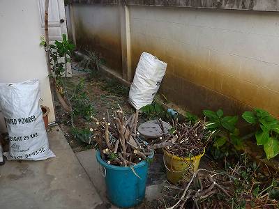 ちょっと休憩してから、3本目のブーゲンビリア伐採に取り掛かり、そしてゴミ袋に詰めて、残りの木はバーベキュウ用に仕分けして作業を終えると16時になってしまった。