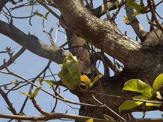 13番ロングホール ティーグランド左側の木 葉っぱを丸めて巣を作っている蟻(中央) |