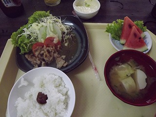 12時になったので今日はこれでお終いにして、昼食タニン市場近くにある日本食を探すが見つからず、結局(ごはん亭)で、カツどん・豚肉しょうが焼き定食・もやし傷め・・・