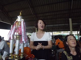 シャワー後真ん中の食堂での、昼食・表彰式 優勝は一緒に回ったM川婦人 2位に理恵さん 3位にM川さん 16位と結果は残念だった。