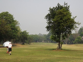 それに気を良くしたわけではないが、8番ホールのショート 天婦羅ぎみでレディースティーの少し前、そこから橋のふもとでドロップして、サンドでオーバーし、ダフリ。
