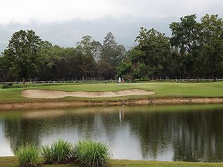 2番コースへ行く予定だったが、前にタイ人5人組で遅いと言うんで、3番コースへ急遽変更して2人で向かう、こちらはまったく人の姿が見えない、前に一人でのプレーヤーがいるだけだった。