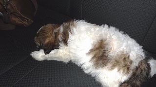 なかなか寝付かれなかったが、犬のほうは疲れもあったのだろうか!