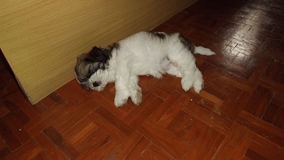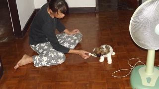 夕方になって少し元気になってきて、一人遊びをしている、しつけはどうしようかと悩むが・・・ぼちぼ