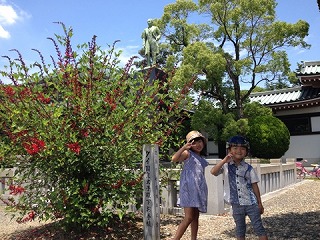 朝食後庭での散歩 犬にしてみればかなり広いし、2・3周回れば良い運動になるだろうなー!