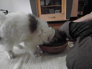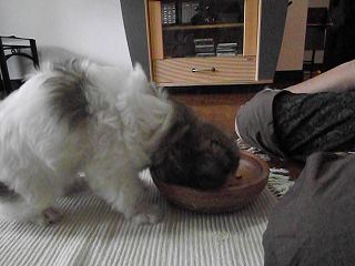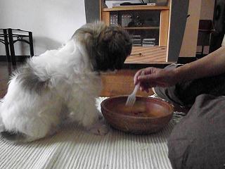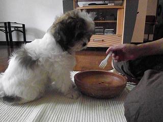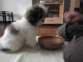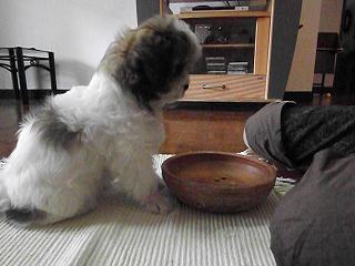 ドッグフードを小分けにして皿に入れ、(待て) (良し) までの仕草がなんともかわいらしい!!