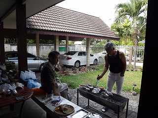 10時過ぎ、BBQの準備を、ルンを紐ではあるが、一緒に準備を始める。
