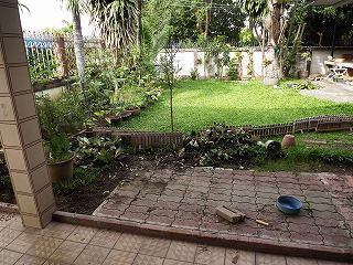 次に庭に出て64度ウエッジのゴルフ練習してから、周りのカラジュームやらを取り除く。