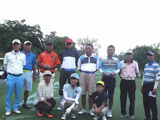 7時前に全員集合して、記念撮影しながら本日のゴルフルール説明を・・・