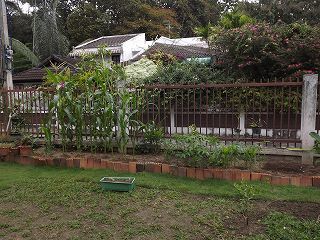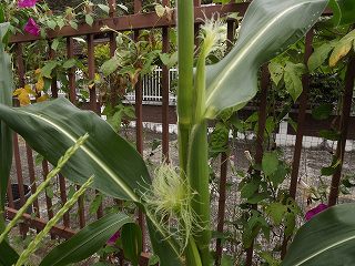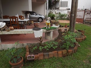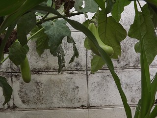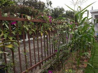 上の塀には{朝顔}と思っているが、種を取って蒔いてはあるのだが、思うように成長しない。