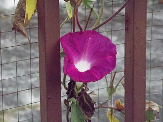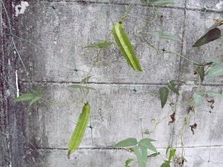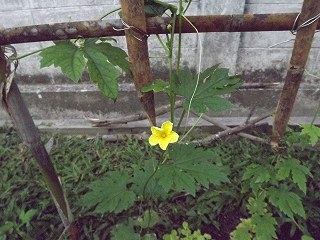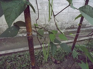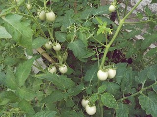前の家からの贈り物のバナナを食べて、昨日夢に見た{トマトが赤く}を確認に7時庭へ。