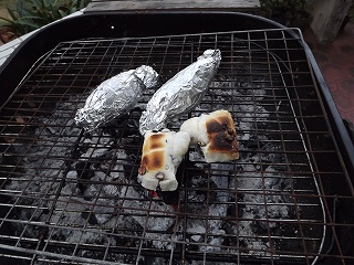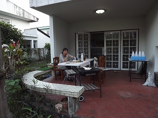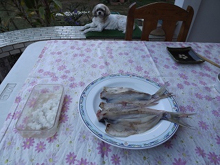 お昼休みをしてから、先ほどのCさんが、取ってきた魚を開き{日干し}2匹持って来てくれる。