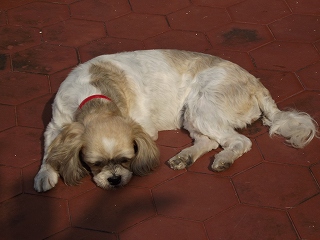 ルン 日光浴してはトイレのタイル 2回ほど繰り返している? 暑いと思うのだが・・・
