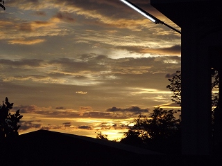 朝焼けが午後になって雨 30分ほど降るが晴れて来てベランダは乾いて来た