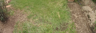 手前はマレー芝 少しずつ取って