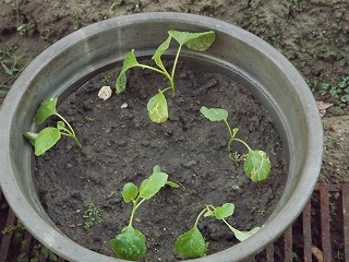 小豆の片付けとタイのナスの植替え