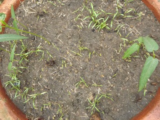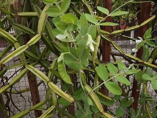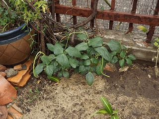 8時には散歩へ出かけ、塀際にインゲンの種蒔きして、マスクメロン植替え